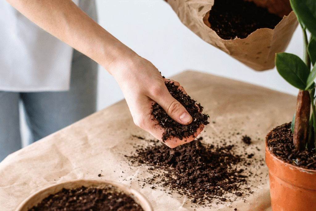 Use labeled indoor potting mix. It already balances drainage, moisture retention, and airflow. No special mixing required when starting out.